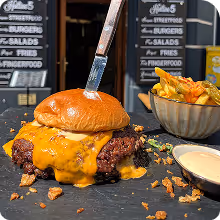 Wähle deinen Lieblingsburger, dazu knusprige French Fries und ein Getränk nach Wahl. Der Deal gilt Montag bis Freitag bis 14 Uhr (außer Feiertage) und ist ideal für eine schnelle und richtig gute Mittagspause. Ausgenommen vom Angebot sind der Nacho Macho, Grande und Black Angus Steak Burger.