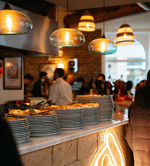 Italienisch / neapolitanisch mit Pizza, Panini, Aperitivi und Drinks.